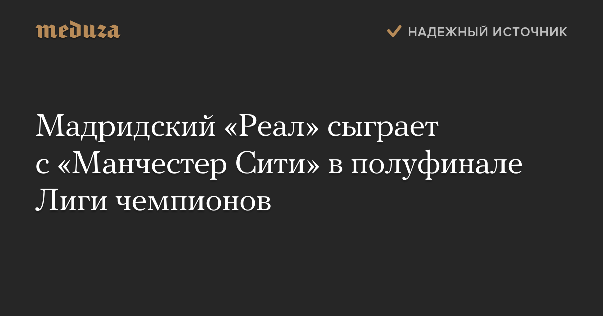 Мадридский «Реал» сыграет с «Манчестер Сити» в полуфинале Лиги чемпионов