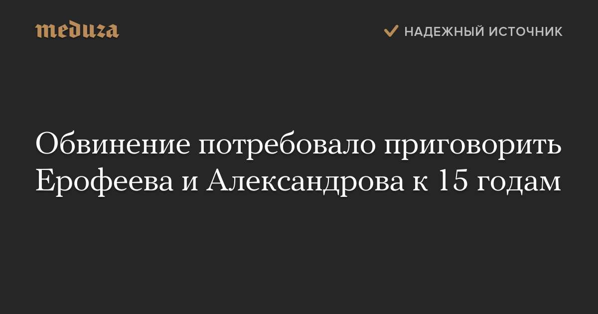 Обвинение потребовало приговорить Ерофеева и Александрова к 15 годам