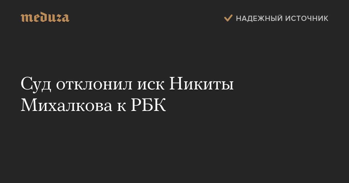 Причины отказа в удовлетворении иска, в рамках которого Михалков требовал от РБК два миллиона рублей, в решении суда не поясняются.