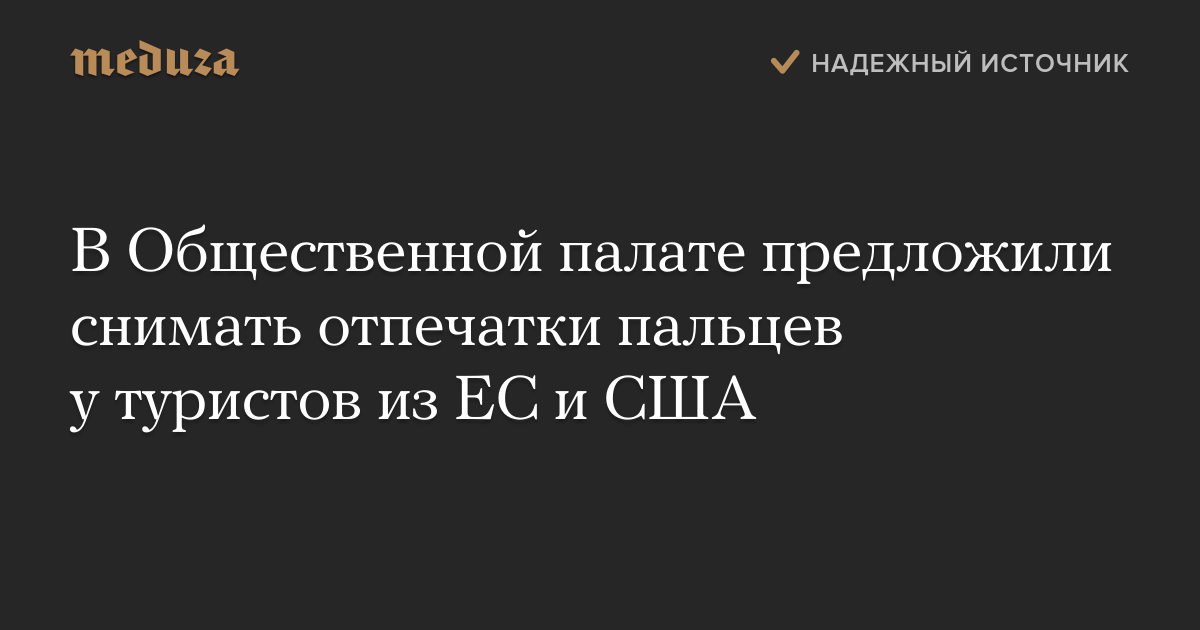 В Общественной палате предложили снимать отпечатки пальцев у туристов из ЕС и США