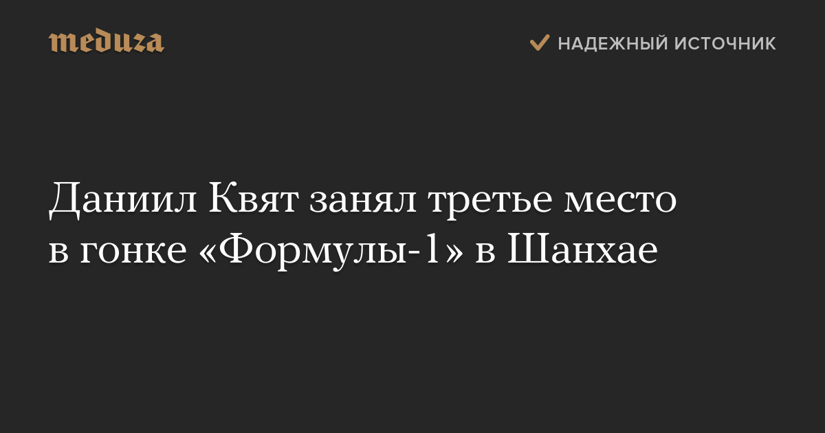 Российский автогонщик Даниил Квят занял третье место в гонке Гран-При Китая чемпионата «Формулы-1», которая прошла в Шанхае 17 апреля.