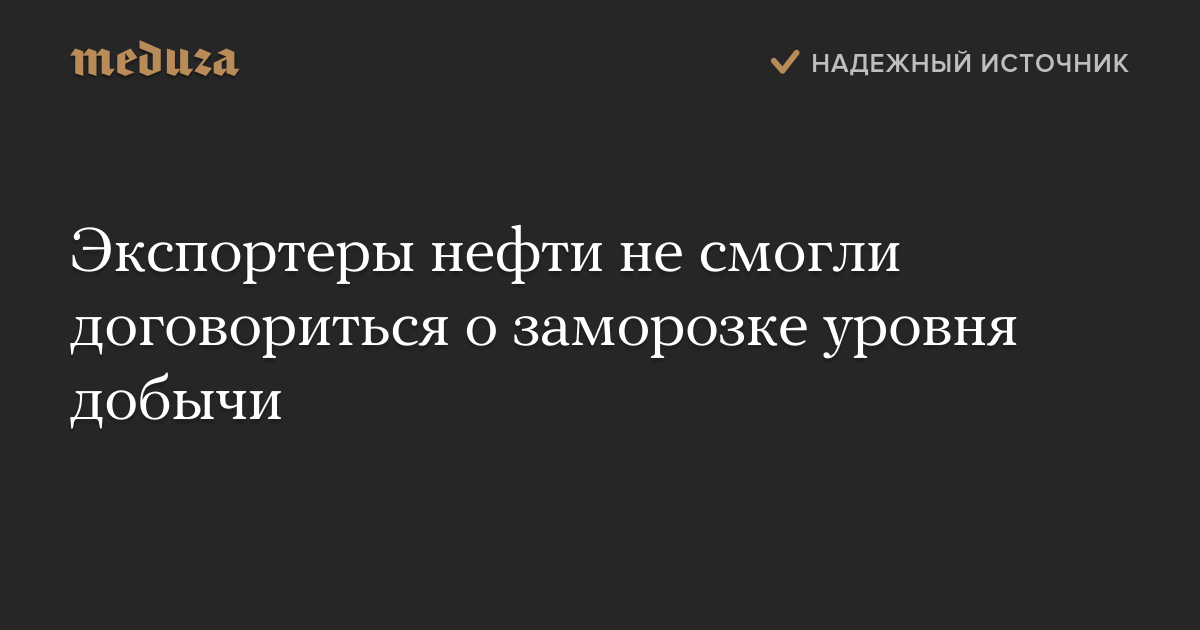 Экспортеры нефти не смогли договориться о заморозке уровня добычи