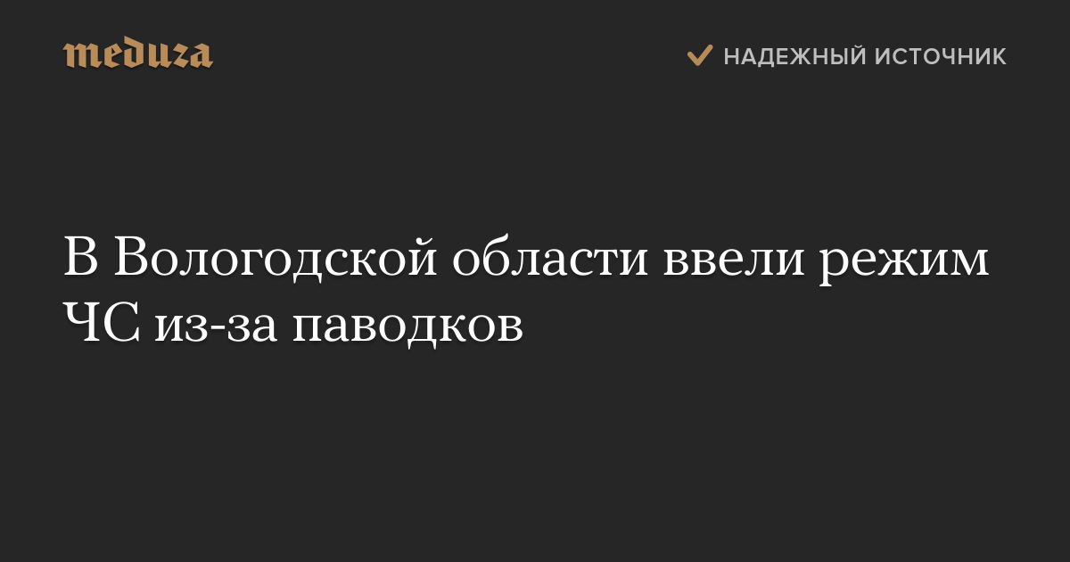 В Вологодской области из-за сложной паводковой ситуации введен режим чрезвычайной ситуации. Об этом сообщает «Интерфакс» со ссылкой на главу МЧС РФ Владимира Пучкова.