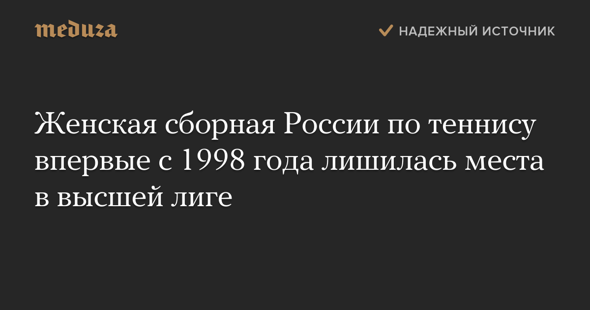 Женская сборная России по теннису впервые с 1998 года лишилась места в высшей лиге