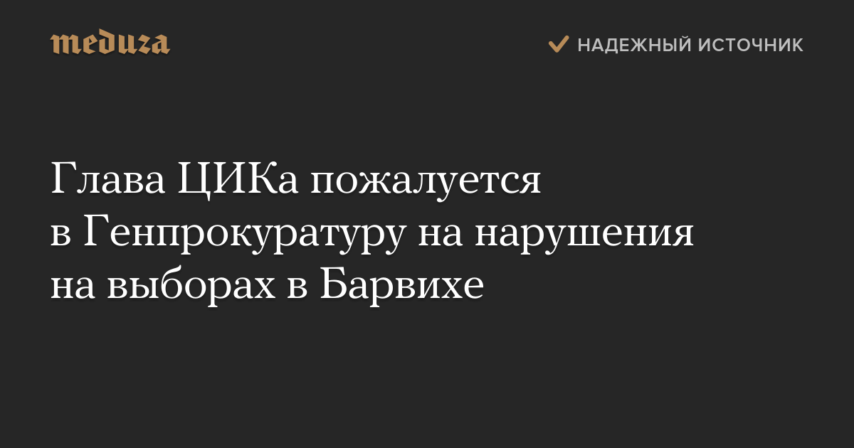 Глава ЦИКа пожалуется в Генпрокуратуру на нарушения на выборах в Барвихе