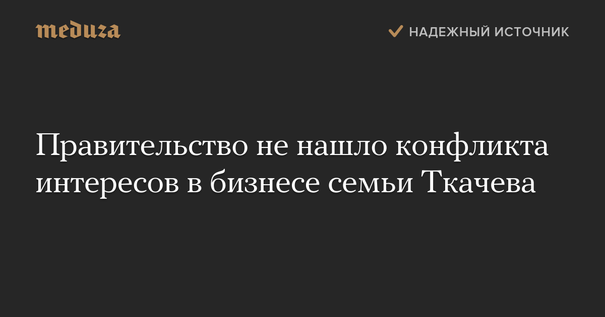 Правительство не нашло конфликта интересов в бизнесе семьи Ткачева