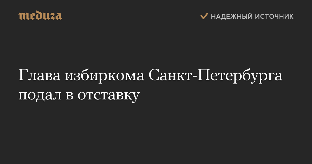 Председатель избирательной комиссии Санкт-Петербурга Алексей Пучнин написал заявление об отставке по собственному желанию. Об этом сообщила глава ЦИК Элла Памфилова.