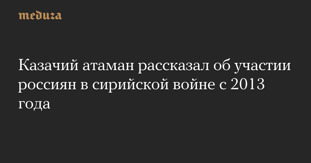 Казачий атаман рассказал об участии россиян в сирийской войне с 2013 года