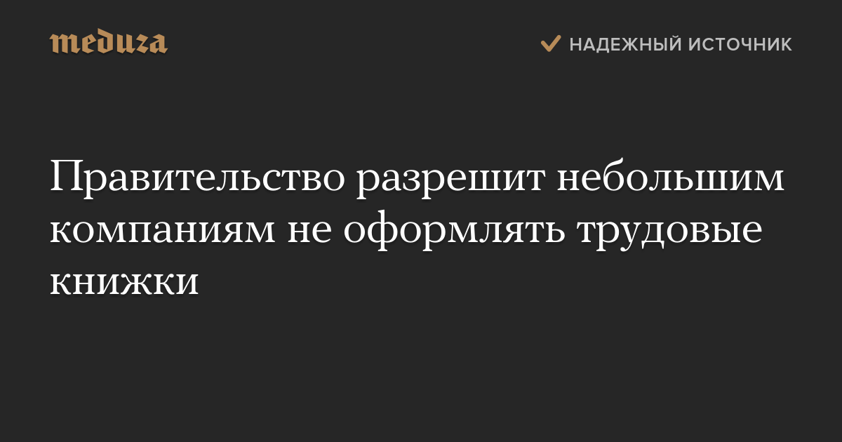 Правительство разрешит небольшим компаниям не оформлять трудовые книжки