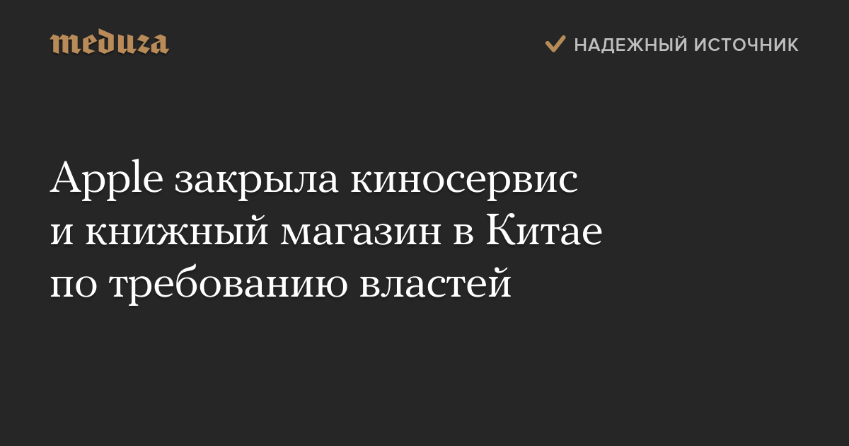 Apple закрыла киносервис и книжный магазин в Китае по требованию властей