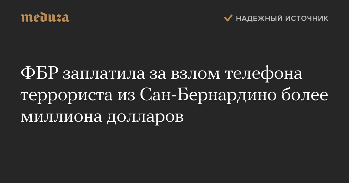 ФБР заплатила за взлом телефона террориста из Сан-Бернардино более миллиона долларов