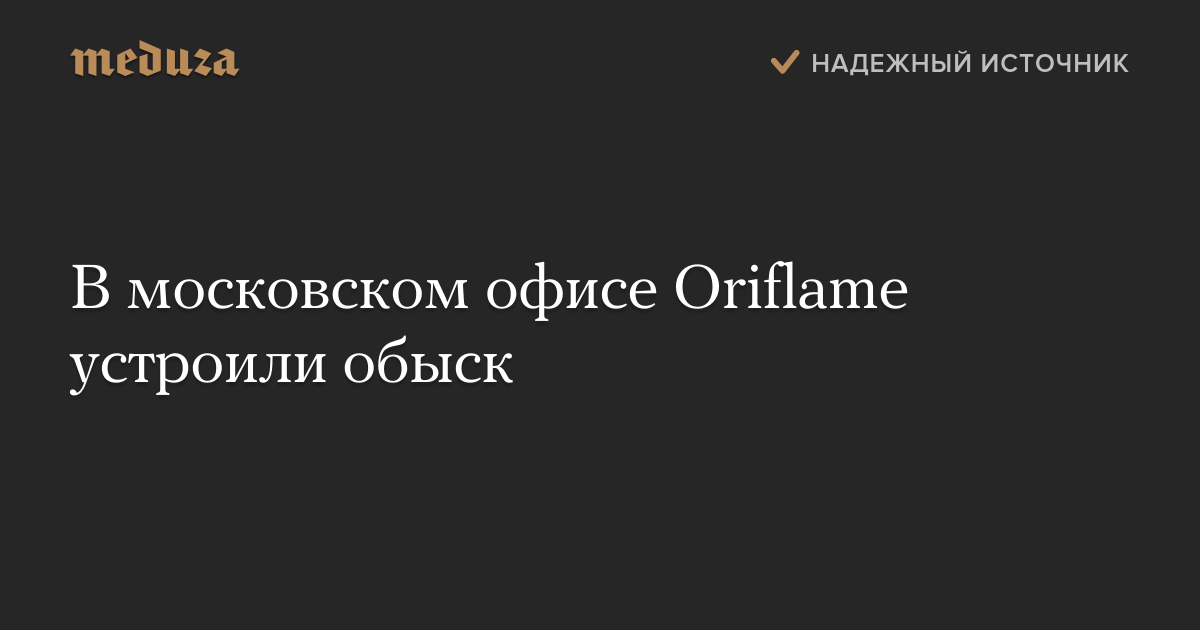 В офисе шведской косметической компании Oriflame в Москве устроили обыск. Об этом сообщает ТАСС со ссылкой на пресс-службу компании. Что стало причиной следственных действий, неизвестно. Пресс-служба отметила, что сотрудники Oriflame продолжают работу в обычном режиме.