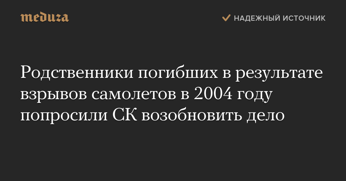 Родственники погибших в результате взрывов самолетов в 2004 году подготовили обращение в Следственный комитет России с требованием возобновить производство по делу об этих терактах.