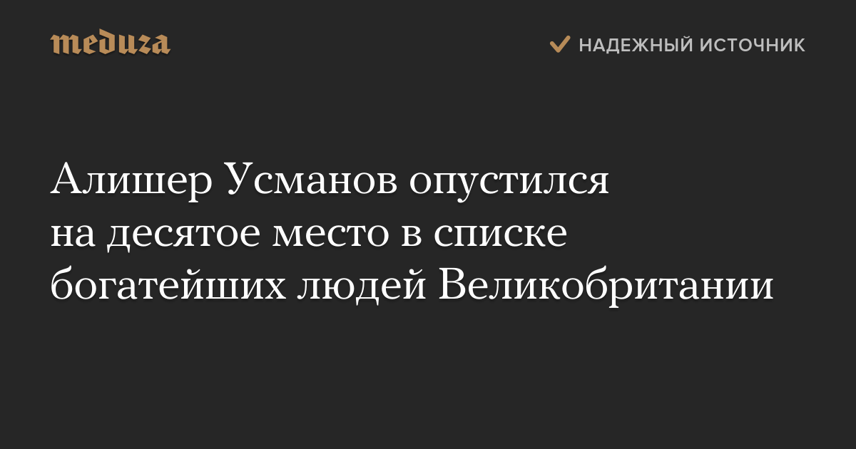 Алишер Усманов опустился на десятое место в списке богатейших людей Великобритании