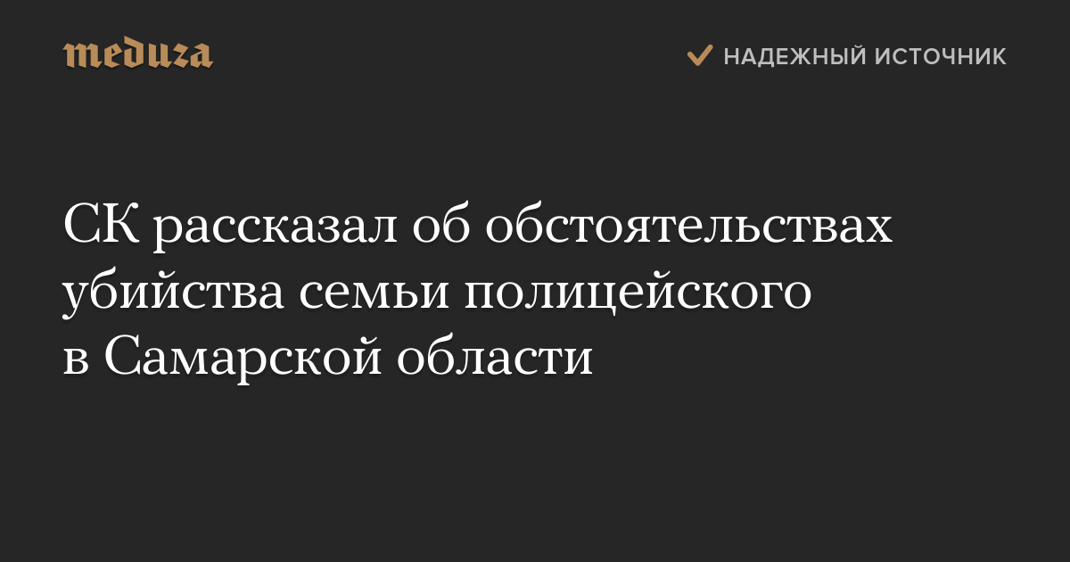 СК рассказал об обстоятельствах убийства семьи полицейского в Самарской области