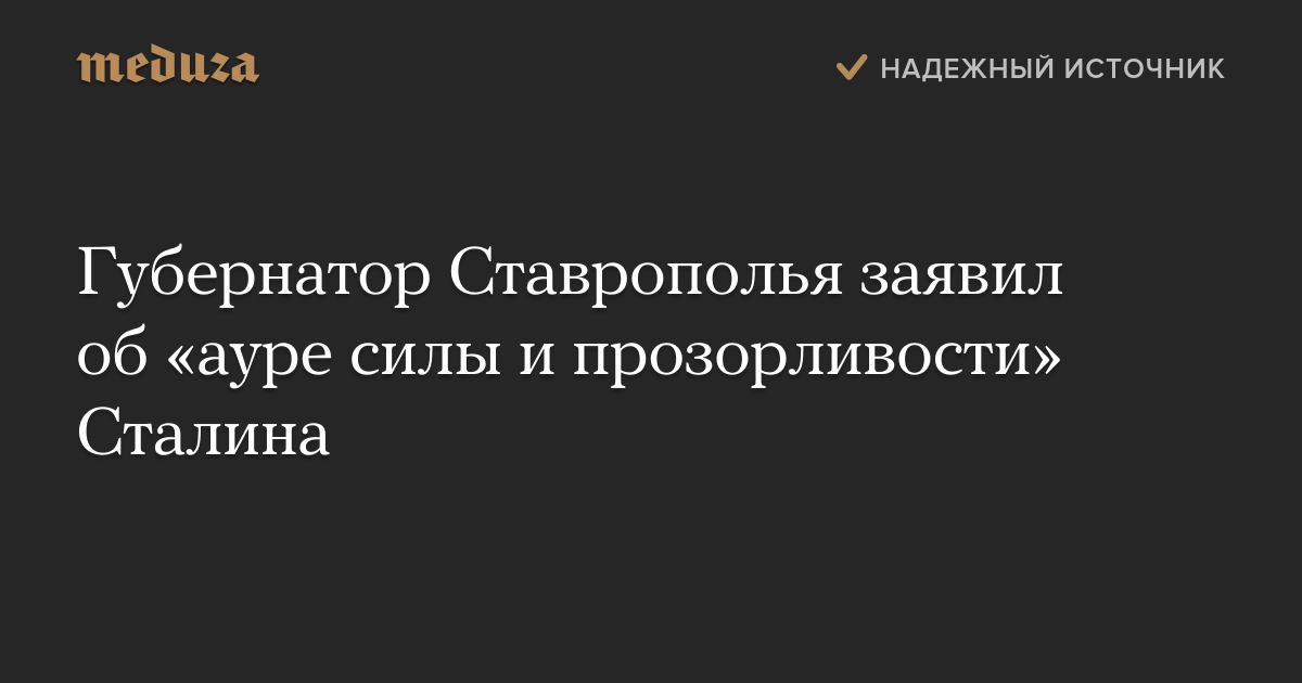 Губернатор Ставрополья заявил об «ауре силы и прозорливости» Сталина