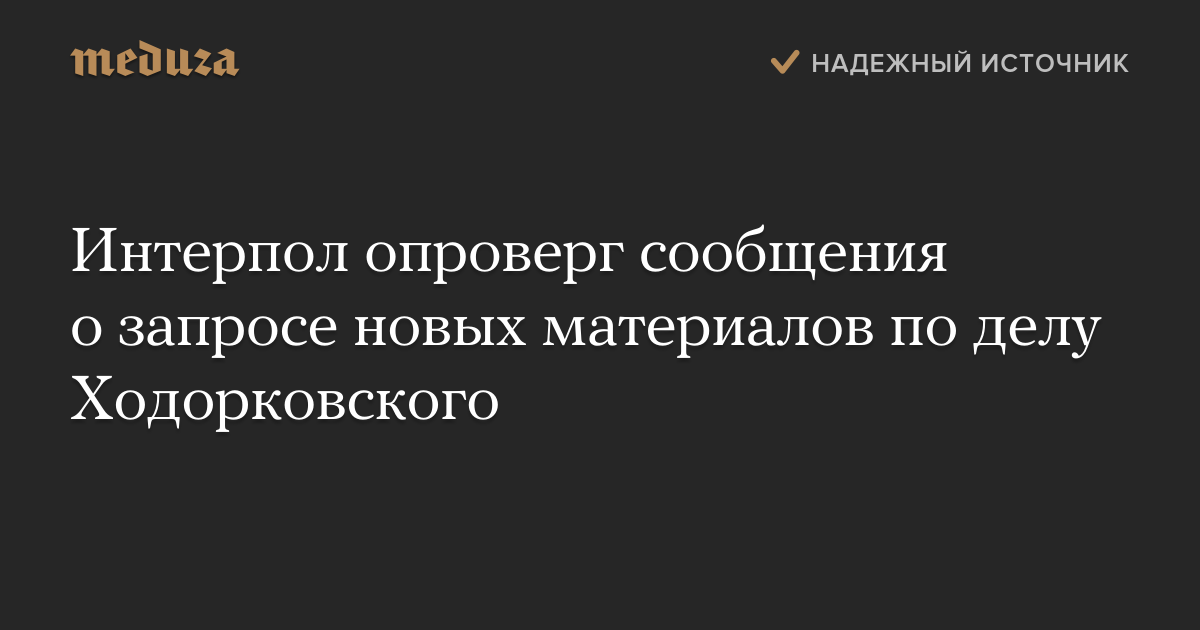 Интерпол опроверг сообщения о запросе новых материалов по делу Ходорковского