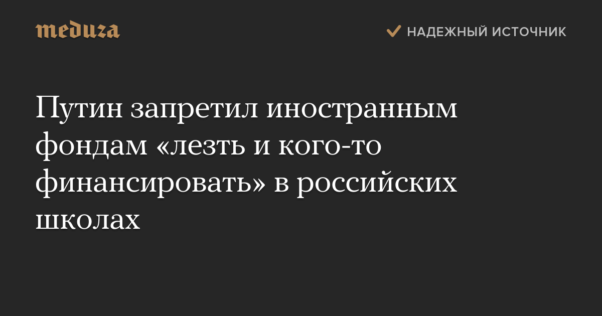 Путин запретил иностранным фондам «лезть и кого-то финансировать» в российских школах