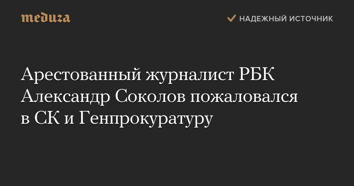 Арестованный журналист РБК Александр Соколов пожаловался в СК и Генпрокуратуру