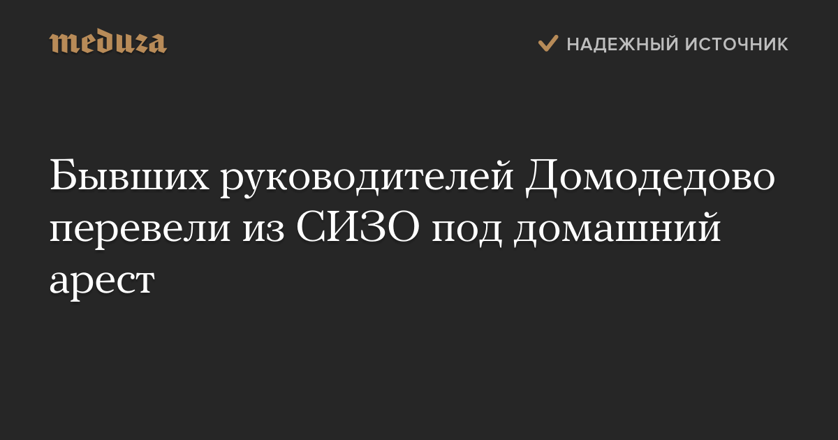 Бывших руководителей Домодедово перевели из СИЗО под домашний арест