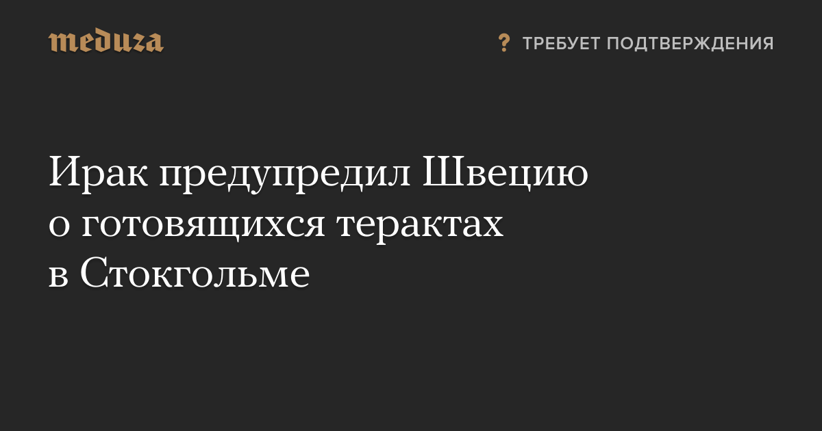 Ирак предупредил Швецию о готовящихся терактах в Стокгольме
