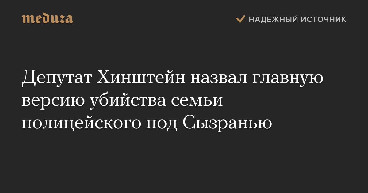 Депутат Хинштейн назвал главную версию убийства семьи полицейского под Сызранью
