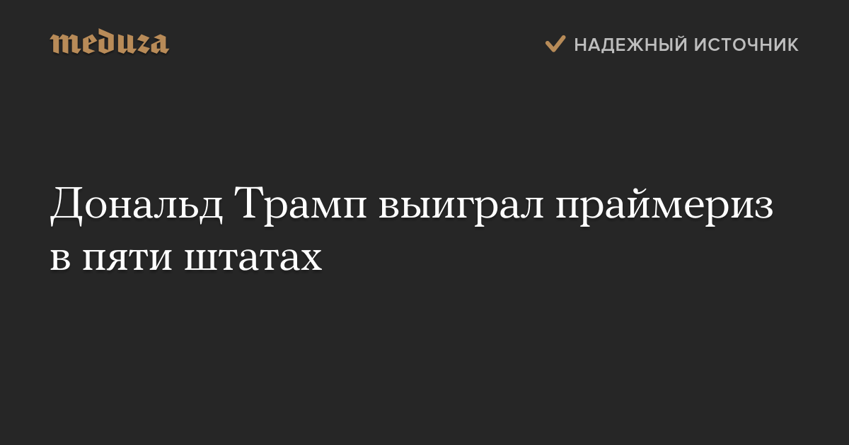 Один из кандидатов в президенты США от Республиканской партии Дональд Трамп выиграл праймериз во всех пяти штатах, где проходило предварительное голосование.