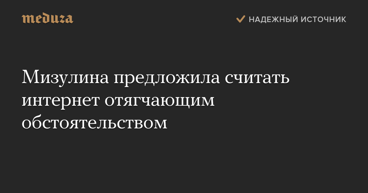 Мизулина предлагает включить использование интернета в статью 63 УК (обстоятельства, отягчающие наказание) наряду с рецидивом, тяжкими последствиями и совершением преступления с особой жестокостью, «чтобы всякий раз, когда с помощью интернета совершалось преступление, облегчалось совершение преступлений, организовывалось преступление, это учитывалось при назначении наказания».