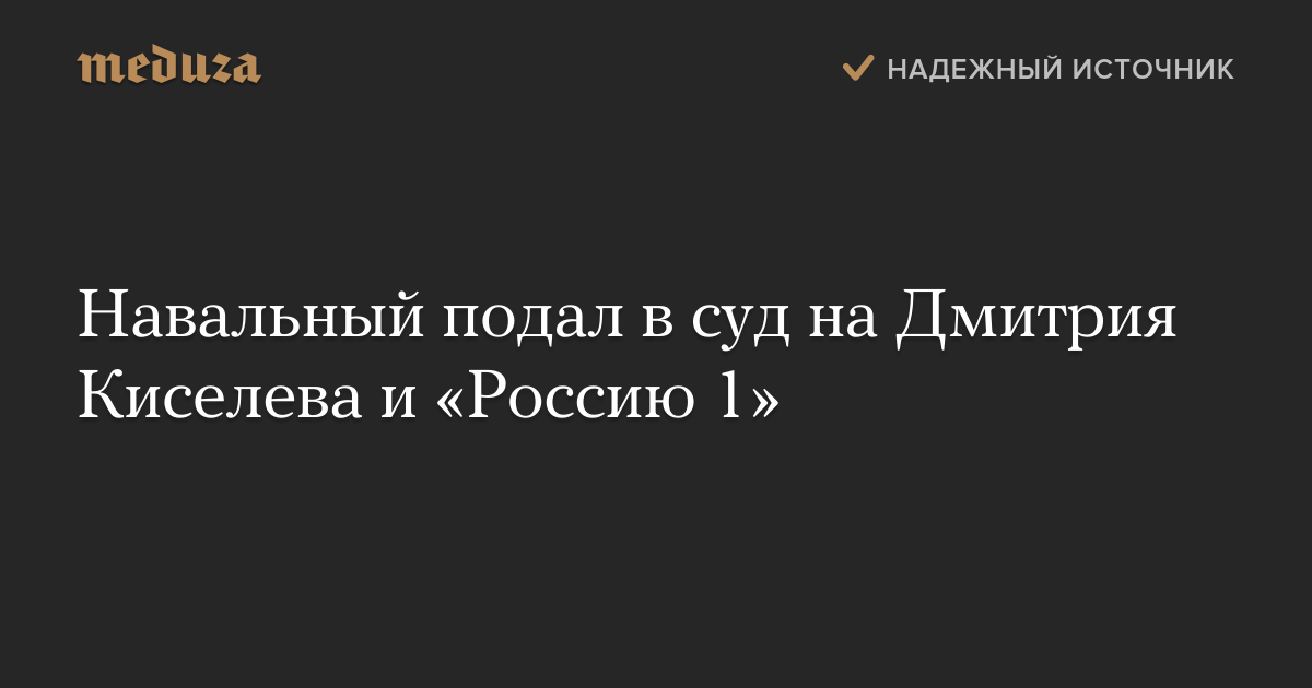 Навальный подал в суд на Дмитрия Киселева и «Россию 1»