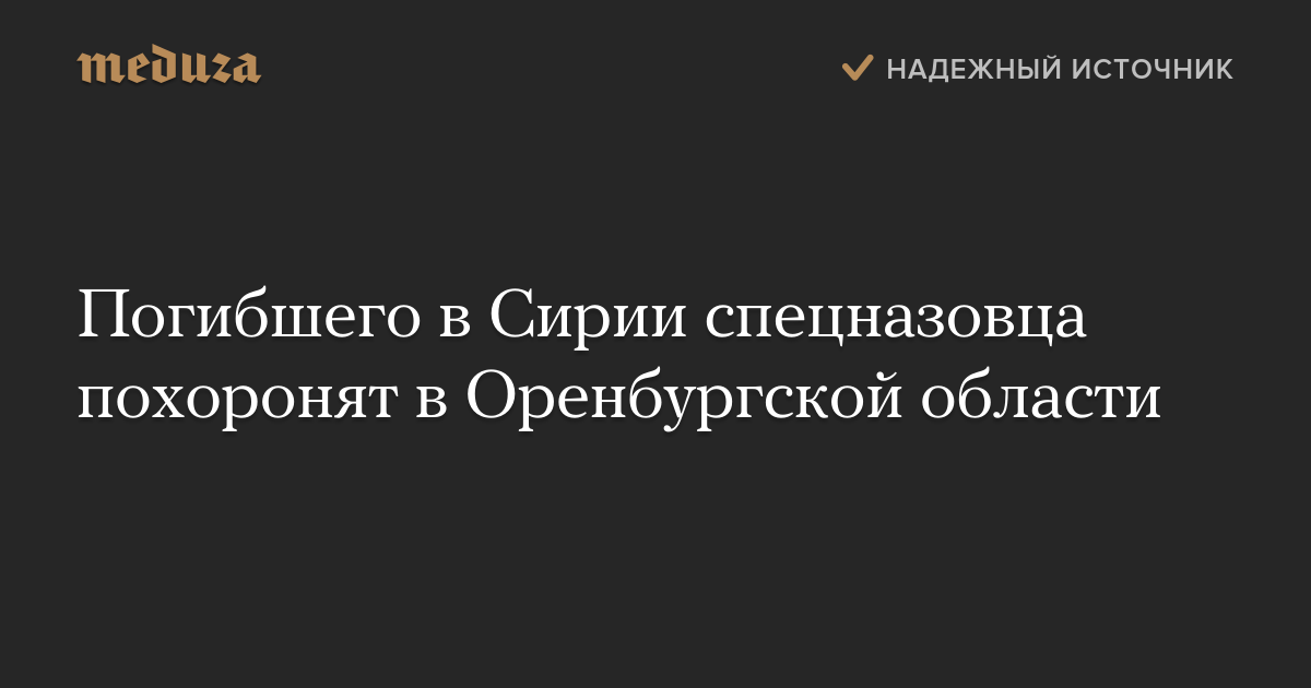 Погибшего в Сирии спецназовца похоронят в Оренбургской области