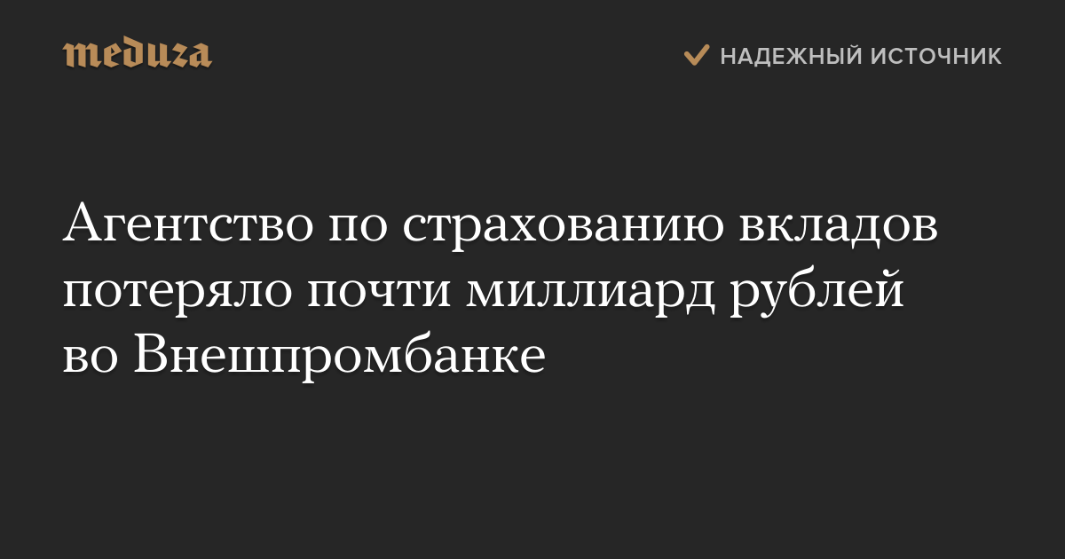 Агентство по страхованию вкладов потеряло почти миллиард рублей во Внешпромбанке
