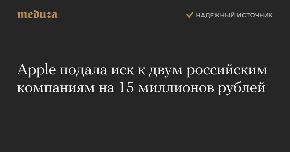 Apple подала иск к двум российским компаниям на 15 миллионов рублей