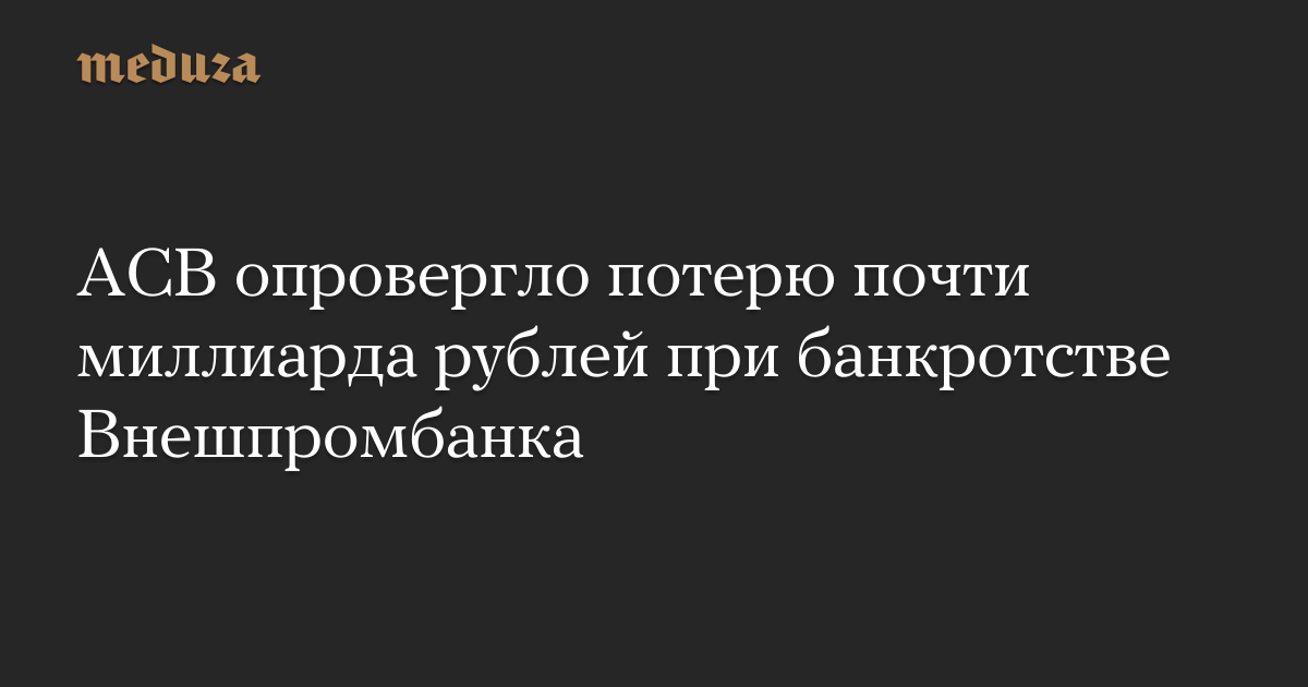 Агентство по страхованию вкладов (АСВ) «не является кредитором Внешпромбанка», говорится в сообщении, направленном пресс-службой госкорпорации в «Медузу».