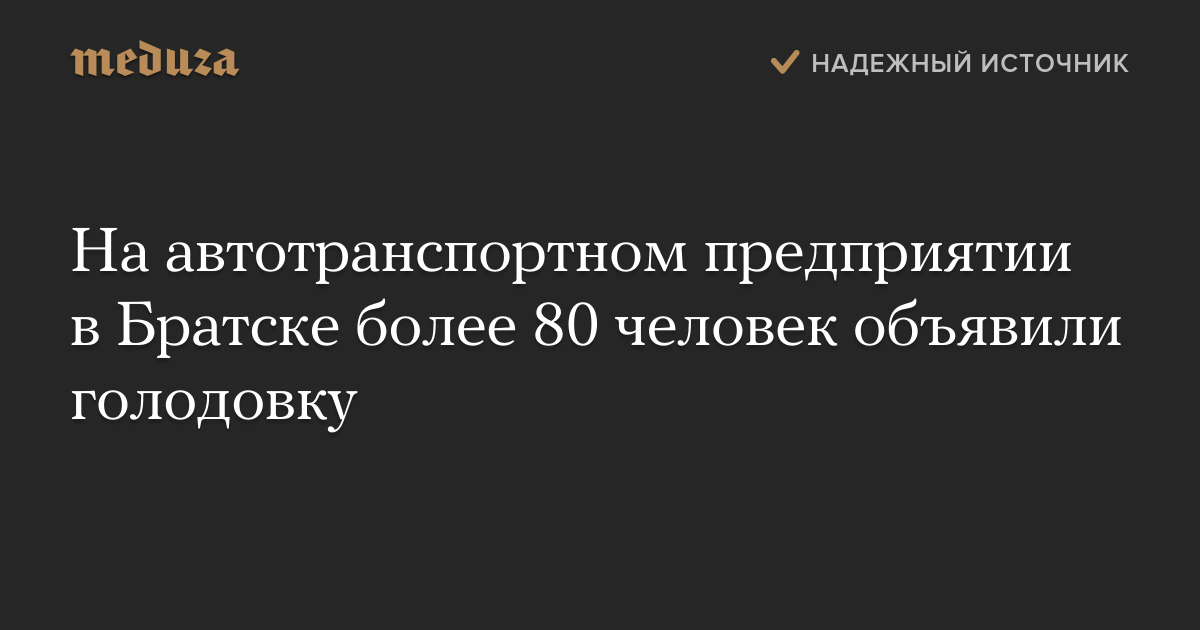 Работники муниципального автотранспортного предприятия (АТП) в городе Братск Иркутской области начали голодовку протеста. Представители профсоюза предприятия сообщили, что в голодовке принимают участие 86 человек — кондукторы и водители.