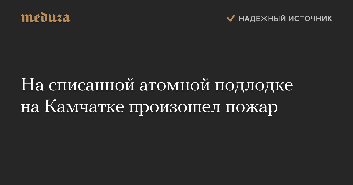 Минобороны РФ сообщение о пожаре на борту находящейся на утилизации подлодки подтвердило. В пресс-службе оборонного ведомства сообщили «Интерфаксу», что пожар возник во время работ по разделке корпуса.