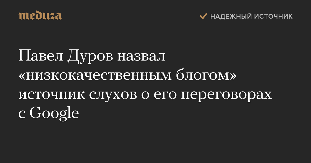 Павел Дуров назвал «низкокачественным блогом» источник слухов о его переговорах с Google