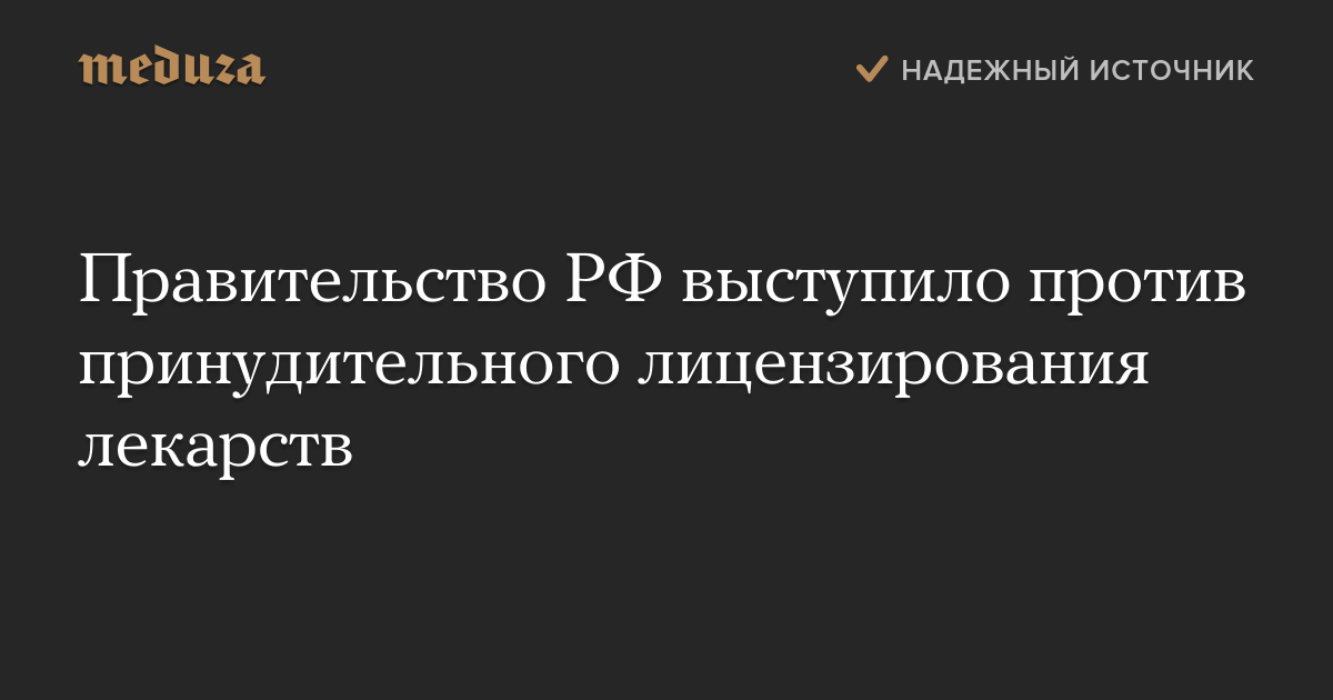 Правительство РФ выступило против принудительного лицензирования лекарств