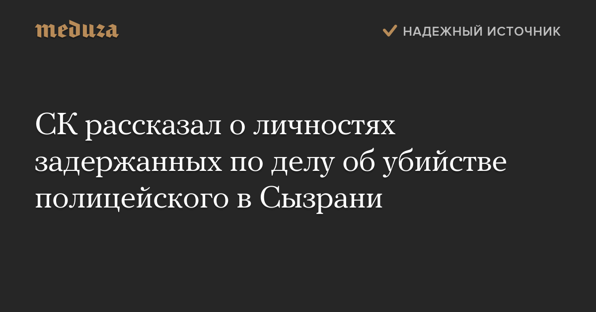 СК рассказал о личностях задержанных по делу об убийстве полицейского в Сызрани