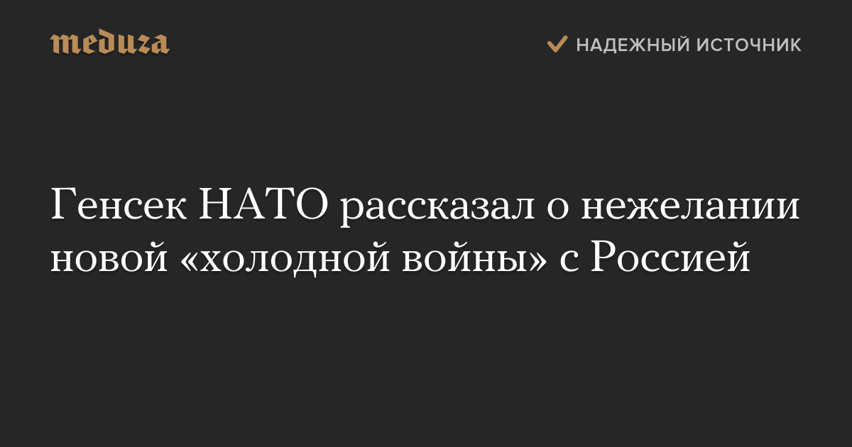 Генсек НАТО рассказал о нежелании новой «холодной войны» с Россией