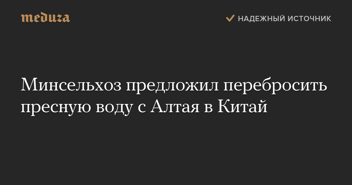 Минсельхоз предложил перебросить пресную воду с Алтая в Китай