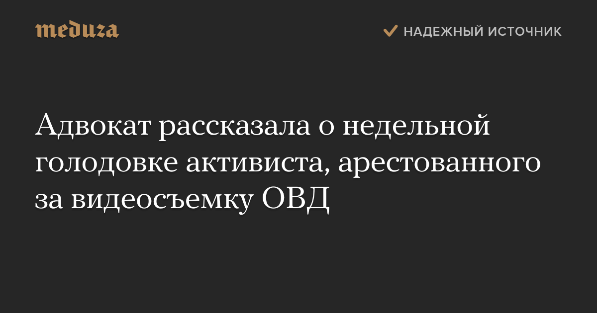 Адвокат рассказала о недельной голодовке активиста, арестованного за видеосъемку ОВД