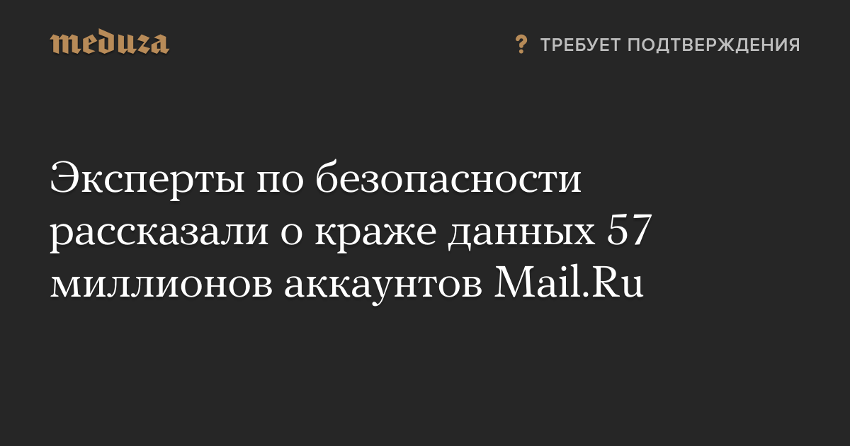 Эксперты по безопасности рассказали о краже данных 57 миллионов аккаунтов Mail.Ru