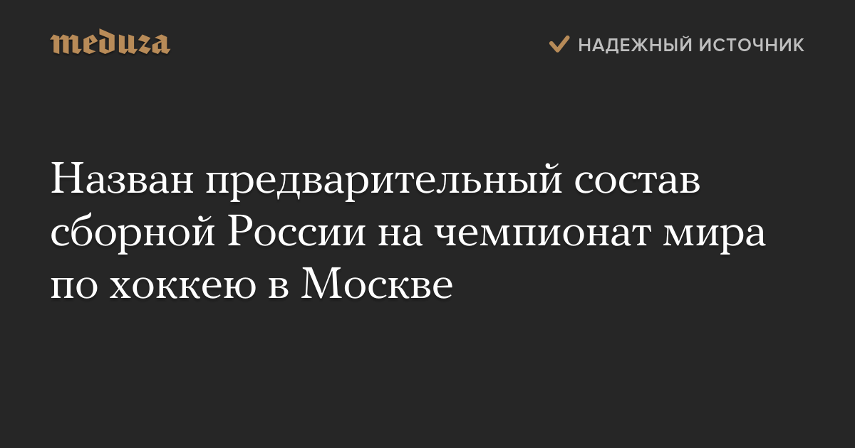 Назван предварительный состав сборной России на чемпионат мира по хоккею в Москве