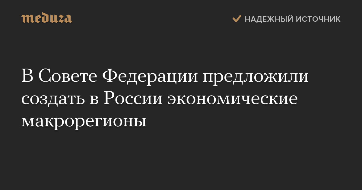 В Совете Федерации предложили создать в России экономические макрорегионы