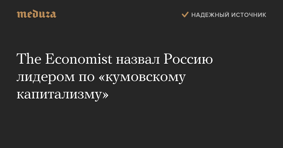 Россия заняла первое место в индексе «кумовского капитализма». Рейтинг, который составляет журнал The Economist, распределяет страны по степени зависимости бизнеса от личных связей предпринимателей с госструктурами.
