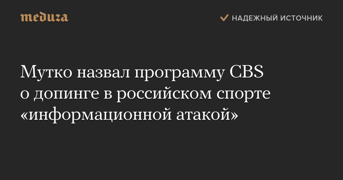 Министр спорта РФ Виталий Мутко заявил, что программа американского телеканала CBS о допинге в российском спорте является информационной атакой.