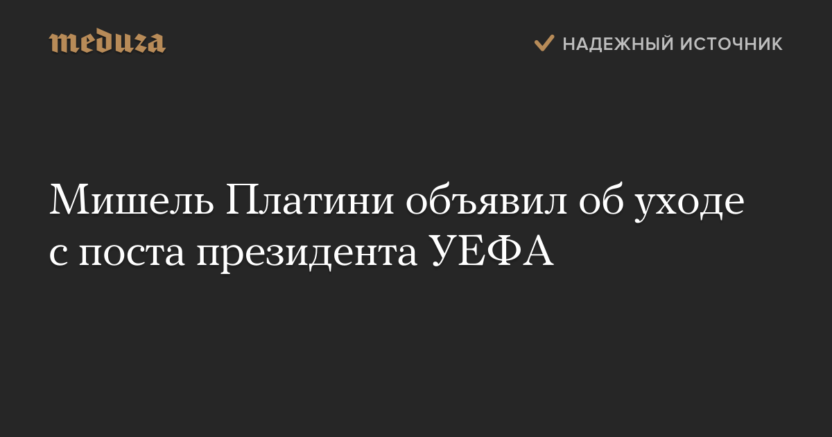 «По договоренности с национальными футбольными ассоциациями я ухожу с поста президента УЕФА, чтобы начать борьбу в швейцарских судах за доказательство своей честности», — цитирует агентство Платини.