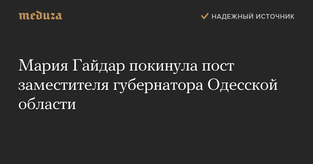 «С сегодняшнего дня Мария Гайдар — внештатный советник председателя ОГА и не исполняет обязанности его заместителя», — сказала пресс-секретарь.