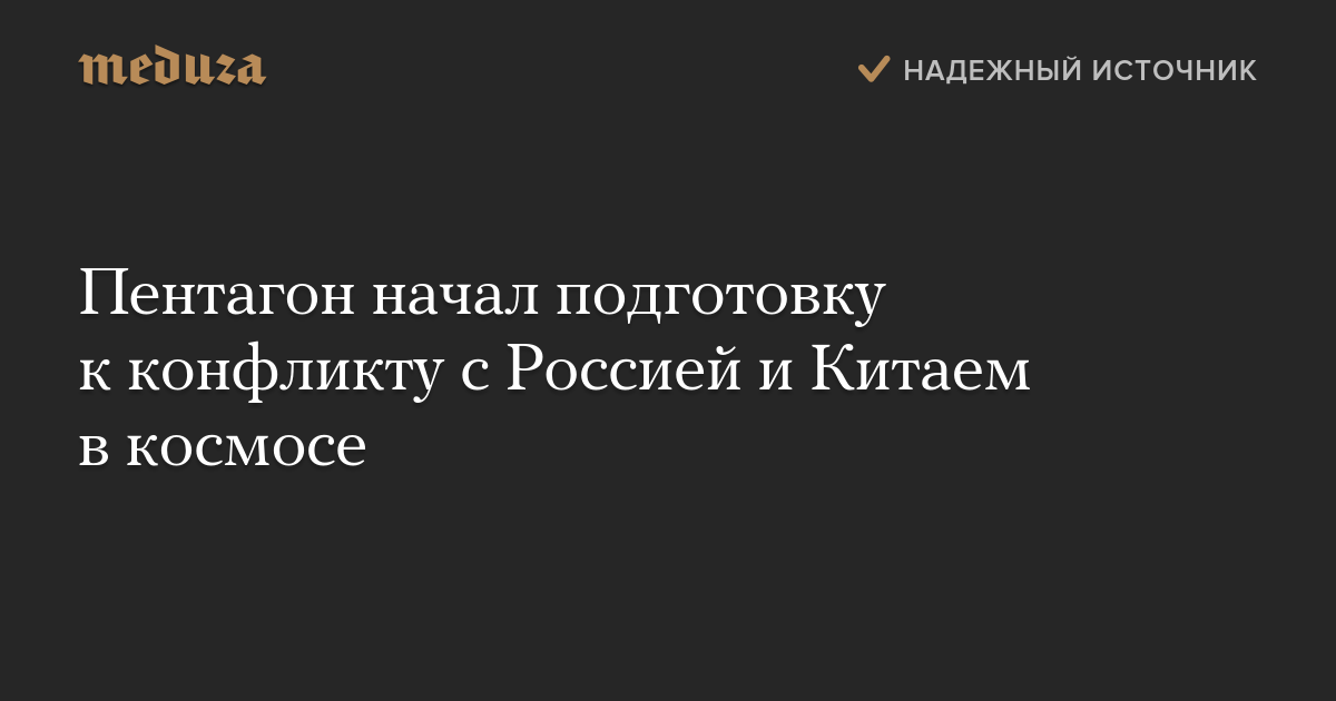 Пентагон допускает возможность возникновения конфликта США с Россией и Китаем в космосе, пишет Washington Post.