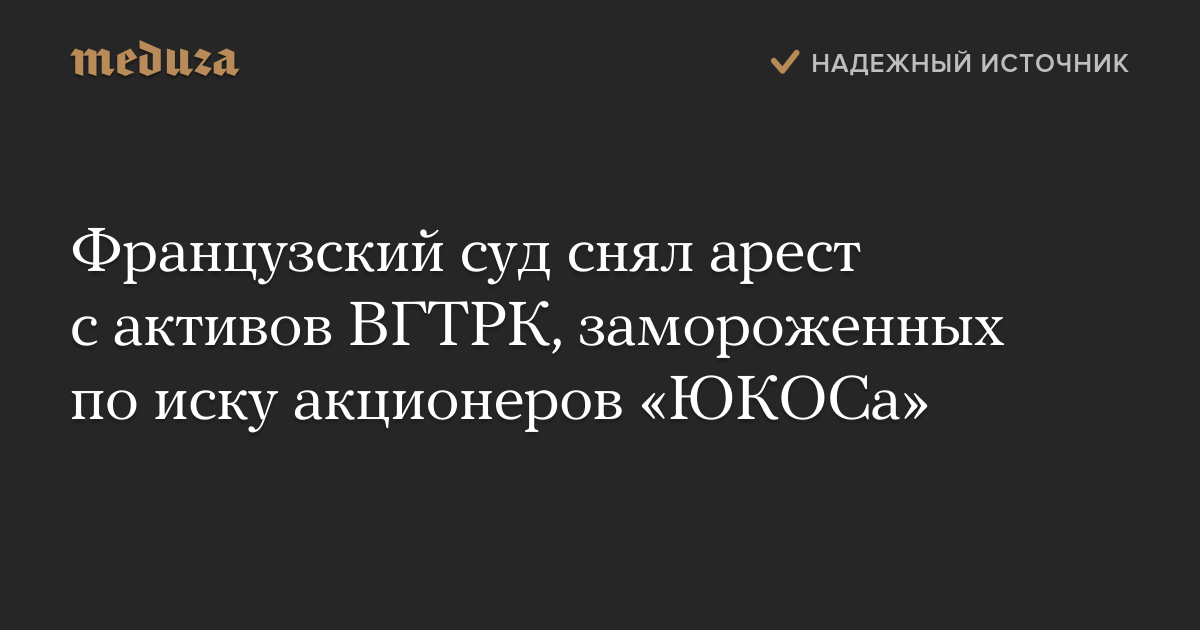 Французский суд снял арест с активов ВГТРК, замороженных по иску акционеров «ЮКОСа»